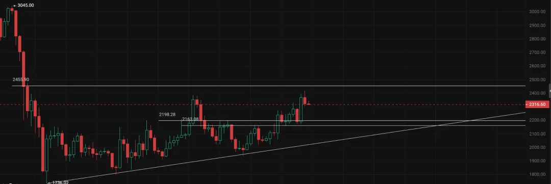 上方压力可操作空单点位:2380、2420、2450,止损15个点,意外情况在2470附近
