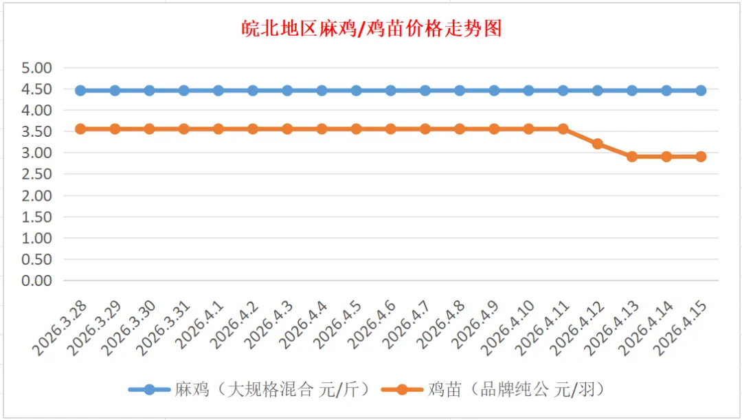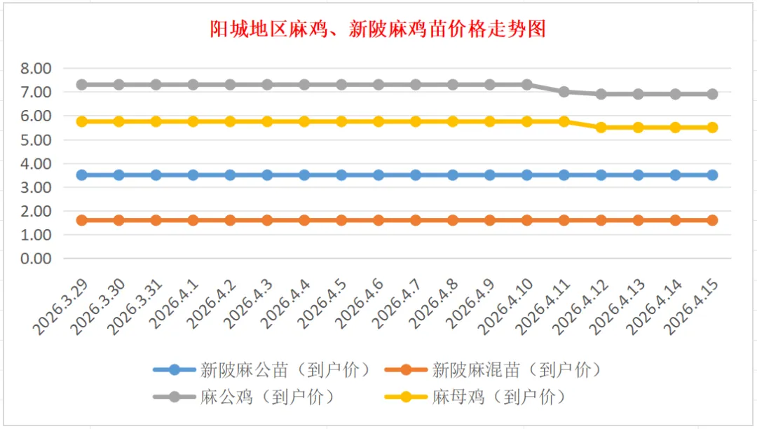 品牌新陂麻:价格稳定,到户价公苗4.50元/羽,稳。