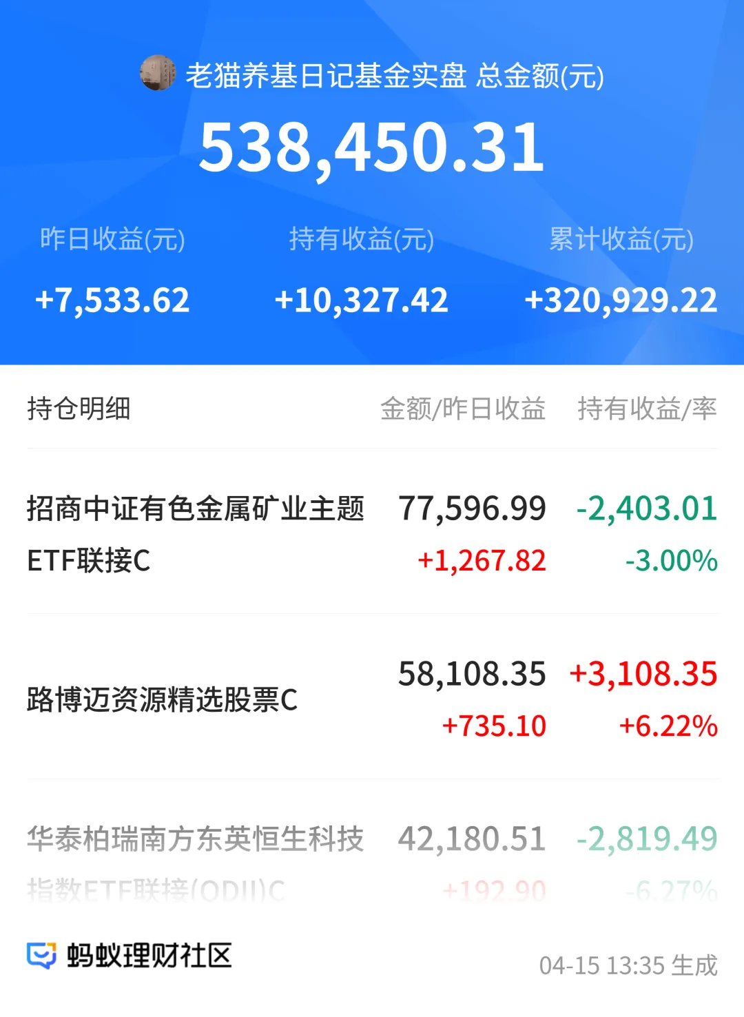 加仓$路博迈资源精选股票C$,金额5000元,近期资源板块有所震荡休整,但期货方面,铜价等商品持续走强,整体基本面依然稳健。全球工业复苏、新能源与 AI 算力带动工业金属需求,叠加供给端偏紧,资源品仍有支撑。这只基金布局黄金、有色、工业金属、化工等方向,持仓均衡,在周期回暖过程中具备不错的韧性,过去的业绩表现也非常不错,近一年上涨了151.88%,我今天再次增配一笔。