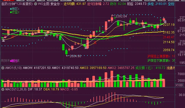 另外,我们从120分走势来看,当前它有一个好处就是MACD上零且今天21上叉48线,这种形态,意味着市场在走强,扭转了之前的空头下行趋势,也就是说,这里短时间我们不用再想它会再创新低了,回打坐线能确认,则还是会继续尝试攻击形成周的双头。