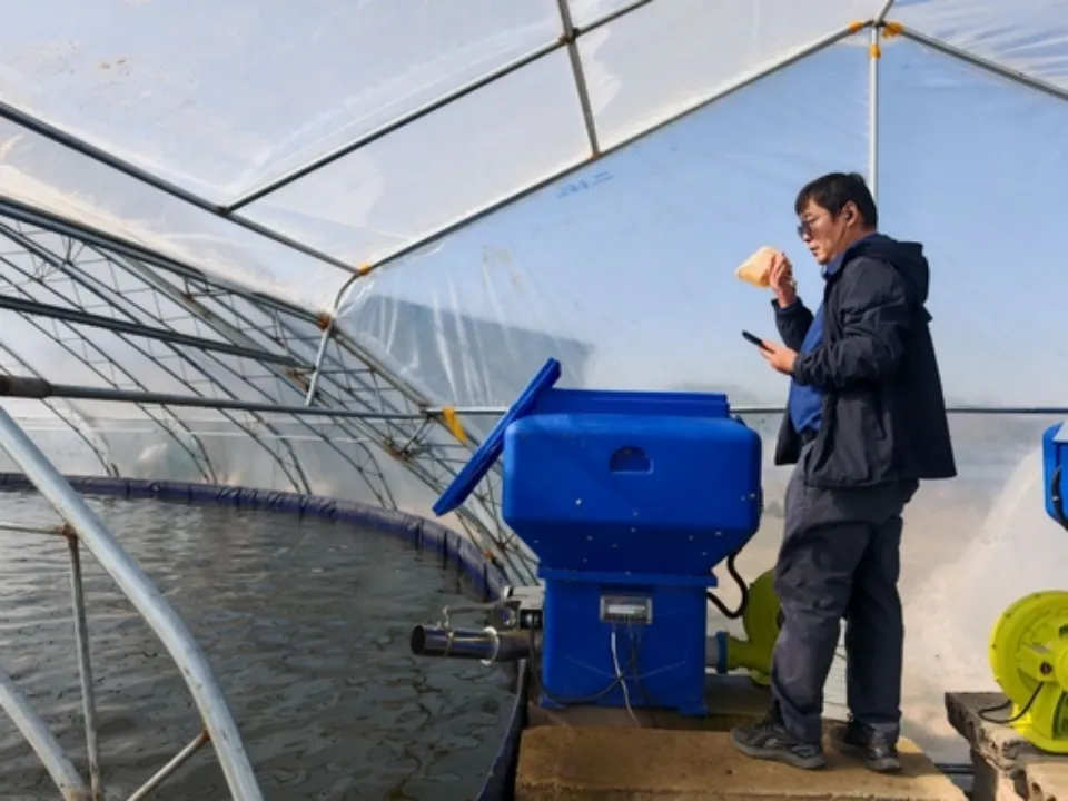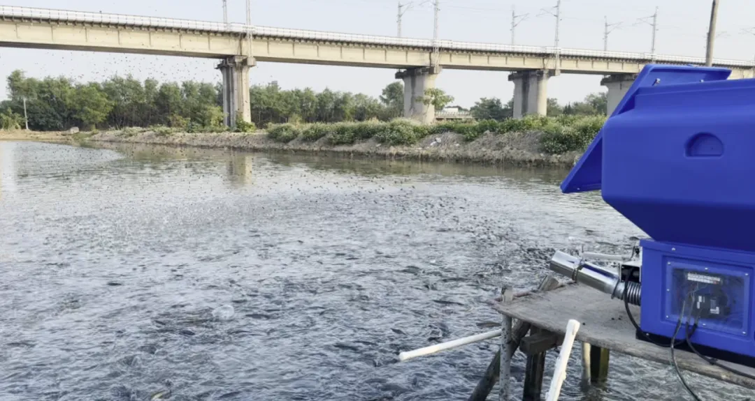 02 专用投料机立大功:料比直降、成活率大涨,效率提升60%在整个循环水养殖流程里,投喂环节看似简单,却直接关系到用料成本、水质稳定和最终成活率。基地在实际运营中也摸索了很久,最终搭配使用的中渔科技的生鲈鱼专用投料机,实实在在帮大家解决了不少以前头疼的问题。
