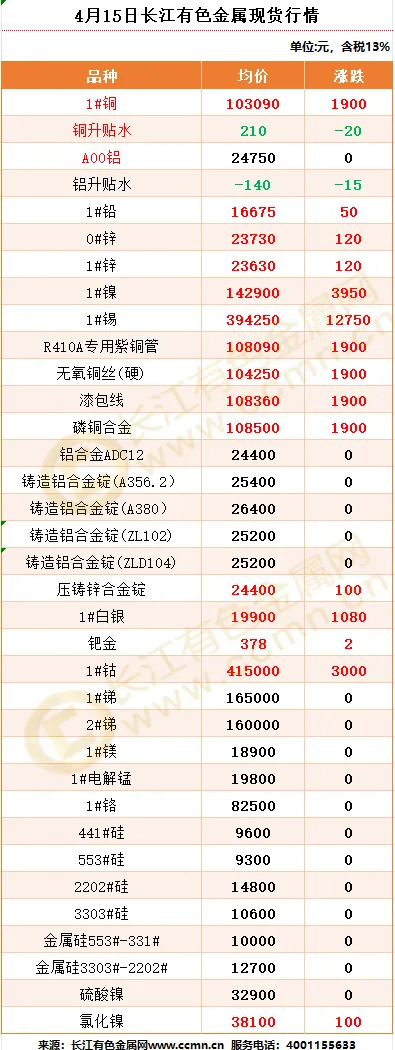 >4月15日长江有色金属现货行情