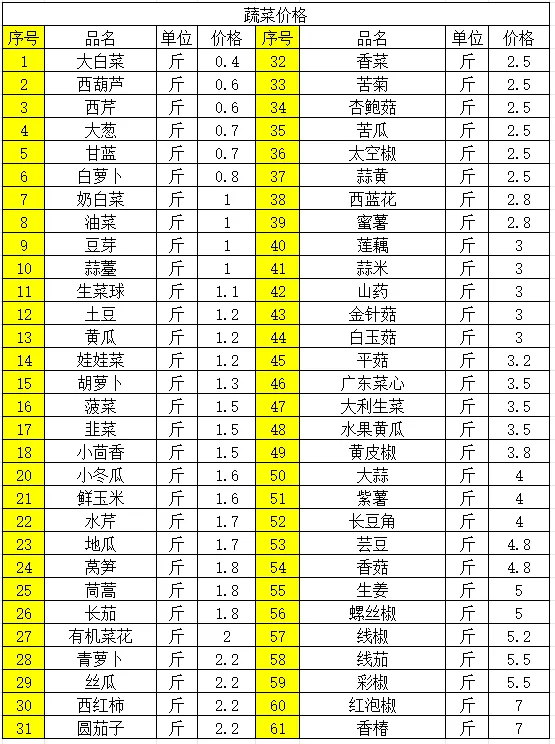1、蔬菜价格