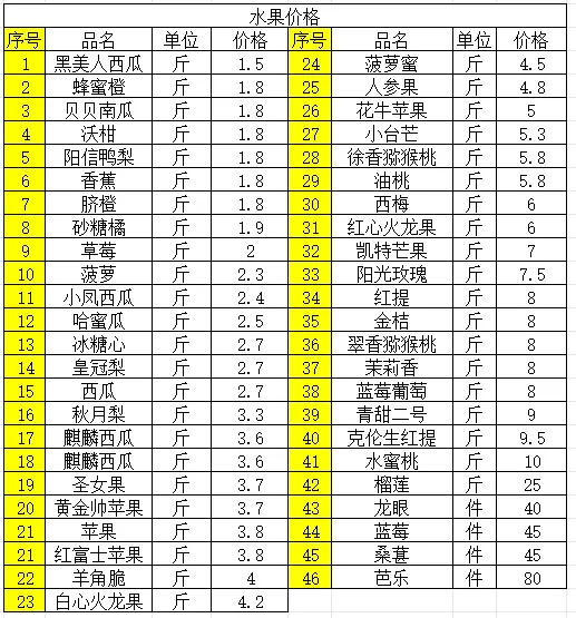 2、水果价格