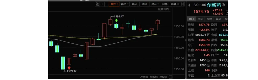 如果自己看得懂创新药,胆子可以大点,后续回踩,只要不破黄线都是上车机会。如果看不懂,但也想做,建议小仓位做ETF。
