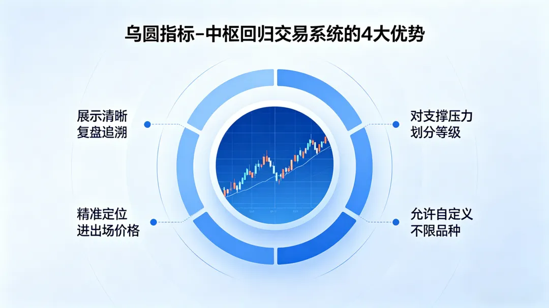 在中枢回归交易系统的基础上,叠加市场波动率,运用数学精算法推演日内进出场位置,开盘即可建立可视化交易区域,交易变成一场开卷考试。