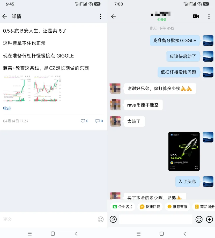 昨天文章中让大家低杠杆接的BR今天迎来了起涨,现货接近翻倍,低杠杆合约也有3倍收益昨天下午分享到朋友圈的策略,GIGGLE 刚开进去没有几个小时现货就拉了50%,合约收益4倍最后有想一起交流的,欢迎扫码下方二维码一起交流meme+合约!