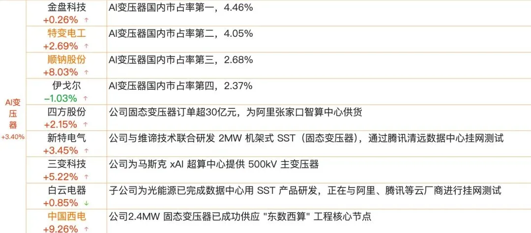 1、变压器:最近一段时间,国内多地的变压器生产企业都在满负荷运转,海外订单持续爆满,有些企业的生产任务已经排到了2027年。