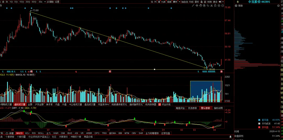 中宠股份看着还可以,庄看样子有底部吸筹,其实之前有观察,但是今日算是启动信号,不过套牢盘还是清理不够干净,且更适合长线考虑。
