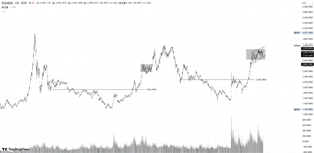 说几句创业板吧,本来我是不想说那么多指数的。当初是精选了俩,中证全指和科创50。但是谁让创业板最近比较强呢。