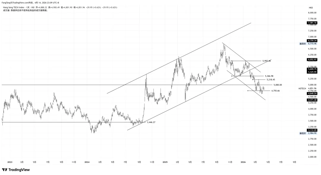 恒生科技,重回4750然后回踩。这个就还是老观点,中短线继续试,长线躺平,全球资产价值洼地。