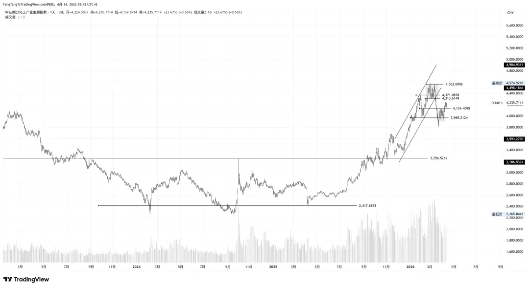 化工,这个玩意卡一下4月8号的低点,不破就考虑调整已经结束。跌破就考虑这玩意是个旗形反弹,后续还有进一步下挫。