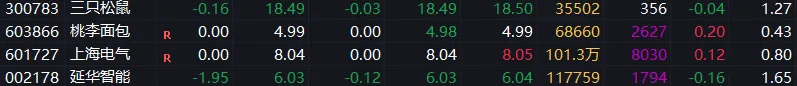 波段票:三只松鼠和桃李面包震荡,耐心等企稳。上海电气震荡,持有。延华智能小幅回调,临近变盘节点,拿好不动。