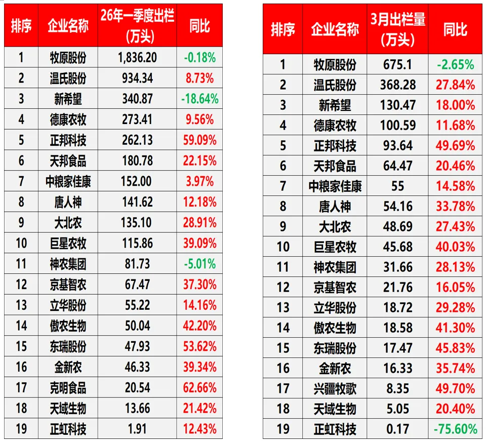 心里想的都是生意,嘴上喊的都是主义!猪场动力网统计了19家上市猪企的一季度出栏量,合计超4757万头,同比增长6.92%!