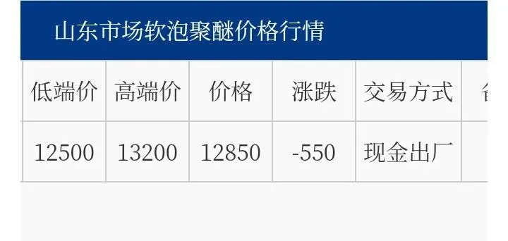 山东软泡聚醚评估商谈区间12500-13200元/吨现汇出厂,具体商谈。