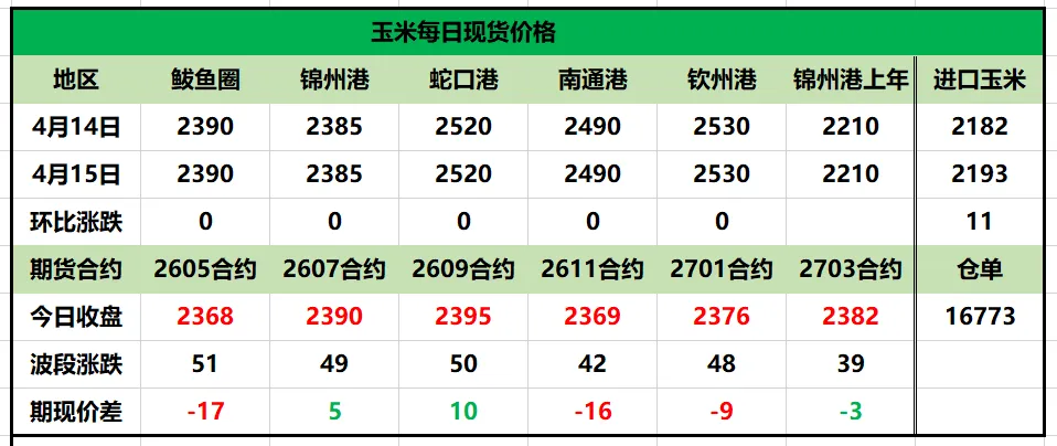 >玉米期现货每日行情更新2026.4.15
