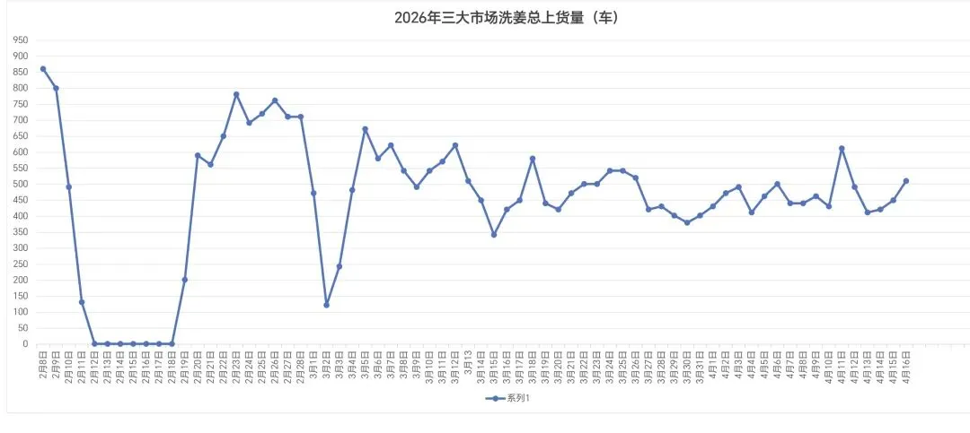三大市场今日总上货510车,较昨日增加60车,下货一般,价格不明显走弱,拉姜、库姜、次货 继续慢.疲