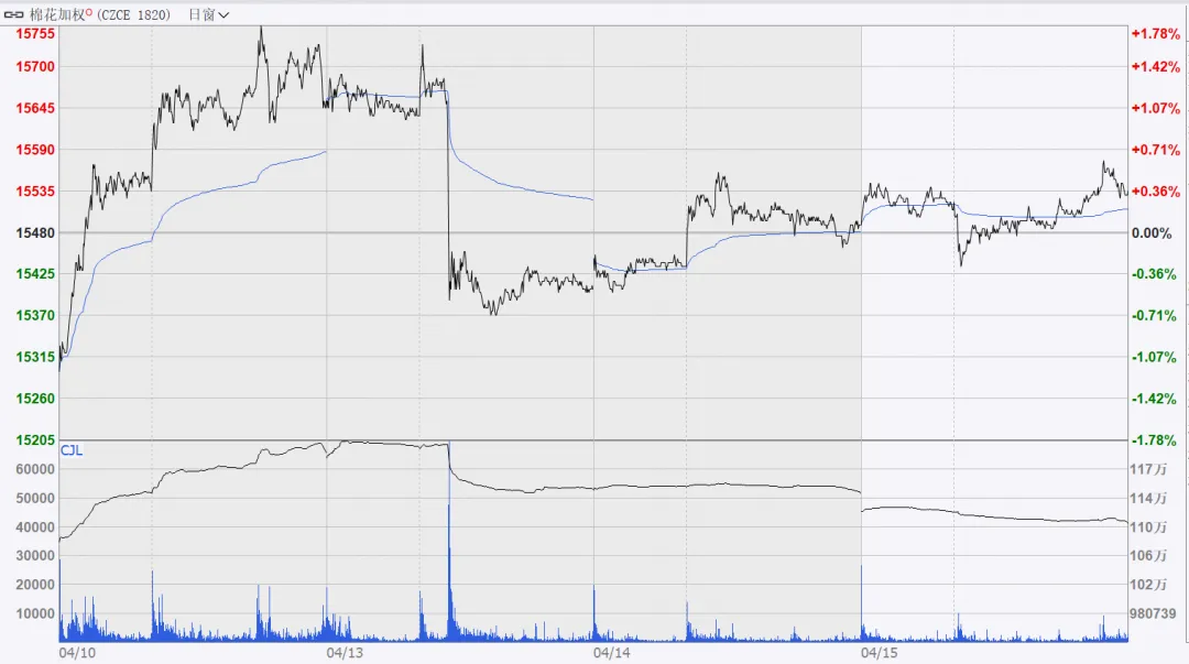 一、4月15日郑棉加权和VIX指数分时图