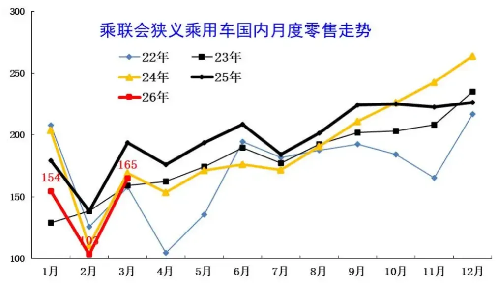 而国内整个乘用车的数据也不是那么乐观。3月的销量为164.8万辆,同比下降 15.0%。一季度累计销量约422.6万辆,同比下降17.4%。