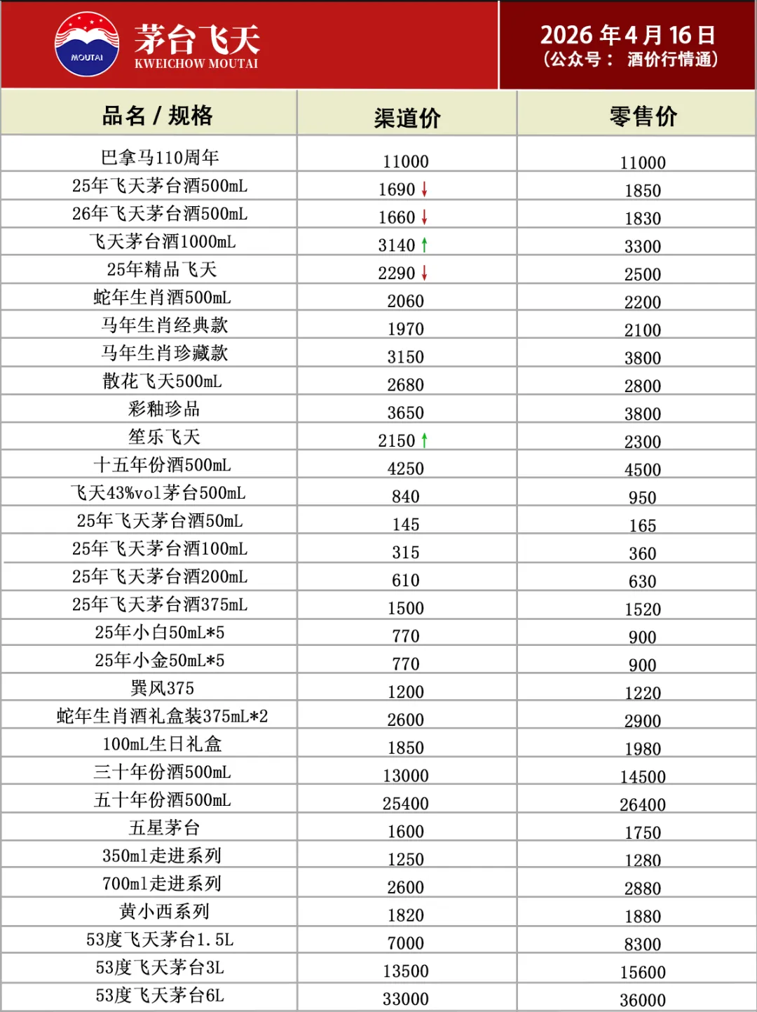 >飞天价格上涨!4月16号酒价行情 飞天价格稳坐1660!