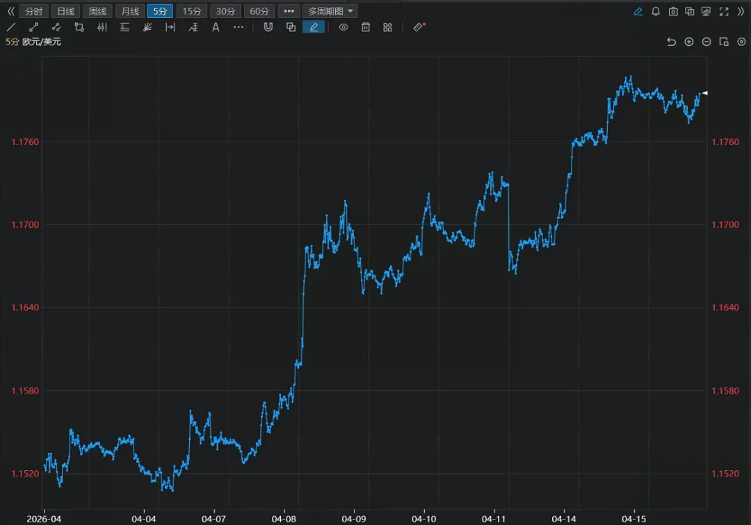 5分钟方向:上涨 ✅(从1.1520涨至1.1770+,近期高位震荡)
