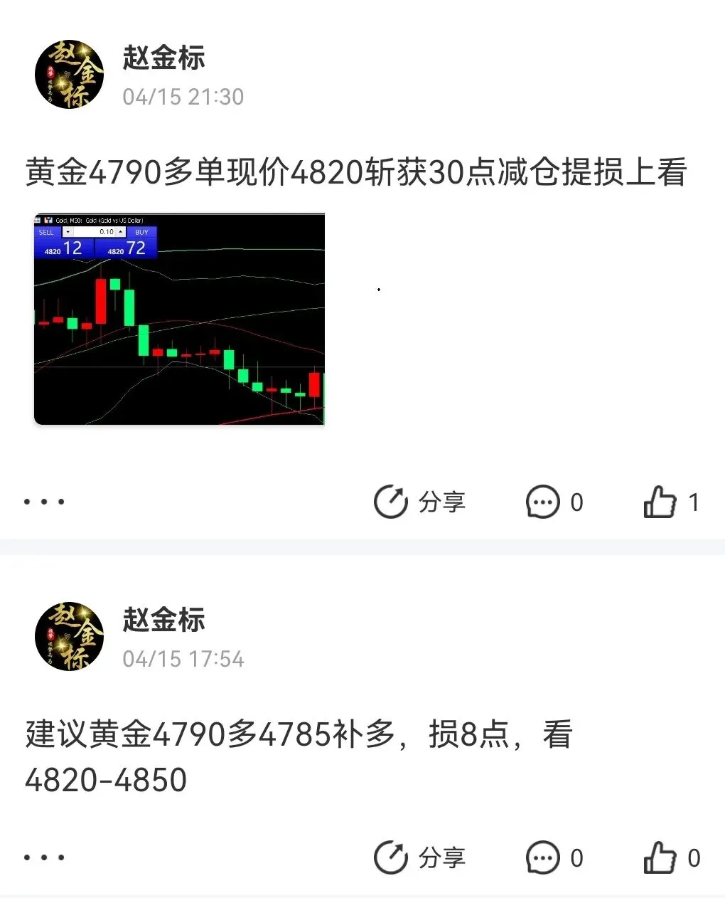 昨日操作回顾:黄金4875空单没给到进场机会错过;黄金4820多单在4829获利9点出局;4805、4800多单在4810总计获利15点出局;黄金第一波4790多单在4820减仓在4825获利35点出局;黄金第二波4790多单在4810获利20点出局;