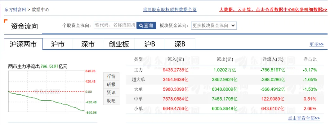 从资金面看:今日两市成交24153亿元,较上一日放量1.3%。两市主力资金净流出766亿元,主力资金抛压抛压暴增1010%。两市成交小幅放量,主力抛压资金大幅增加,空头资金今日稍占上风。