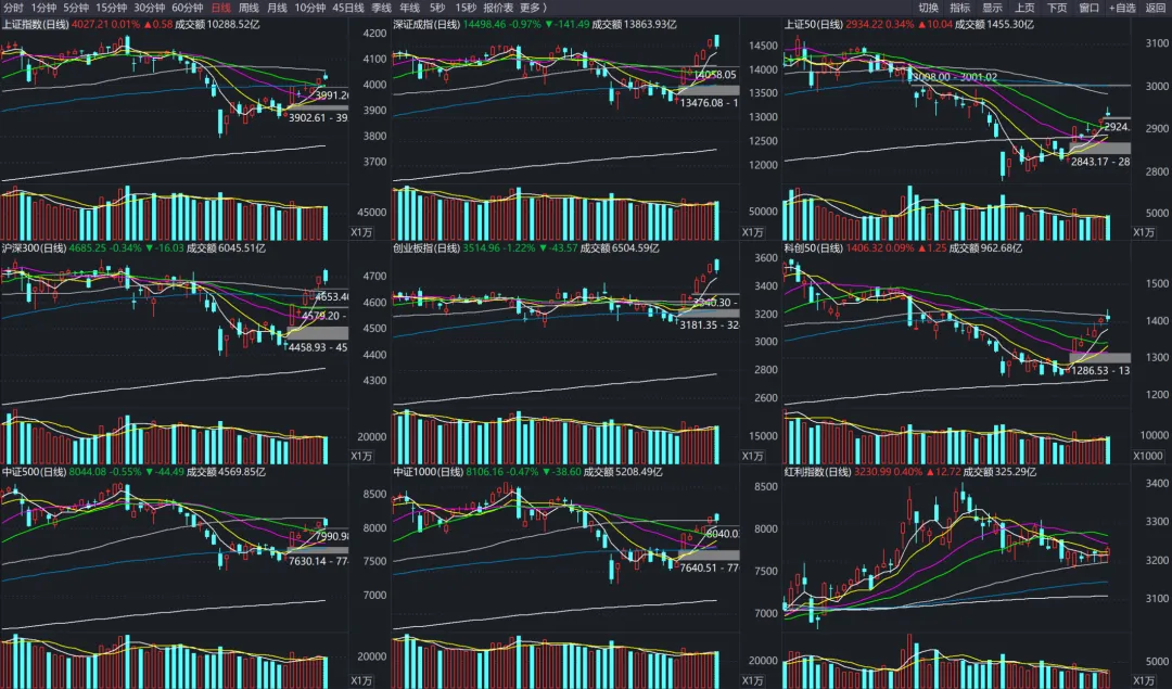 周三受到外围消息影响原油早盘价格大跌,亚洲股市集体高开,不过A股走势并没有港股和日韩股市强势。截止收盘各大重要指数反而跌多涨少,其中上证50、科创50、上证指数上涨,创业板指、深证成指、中证500、中证1000、中证2000、沪深300下跌。