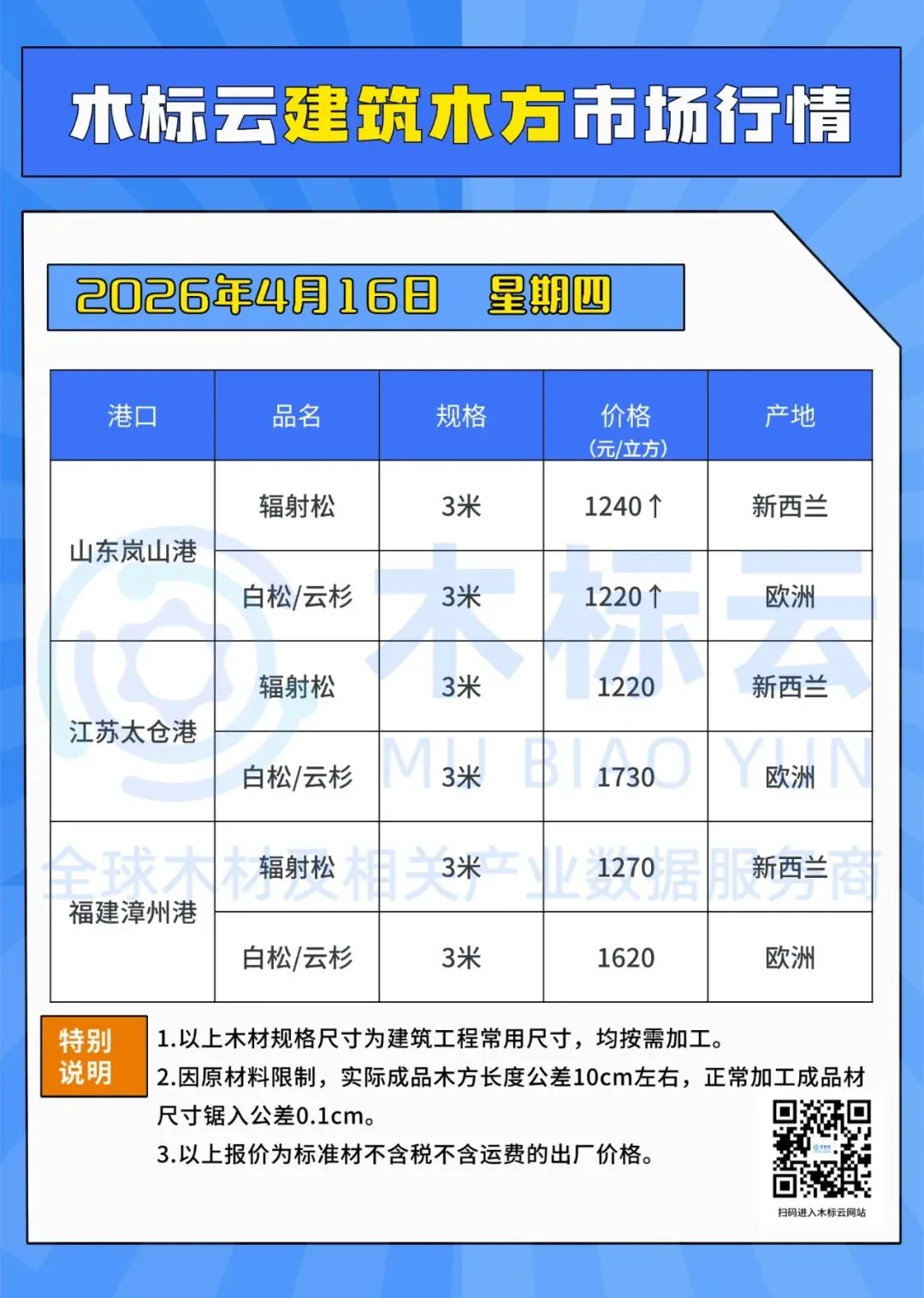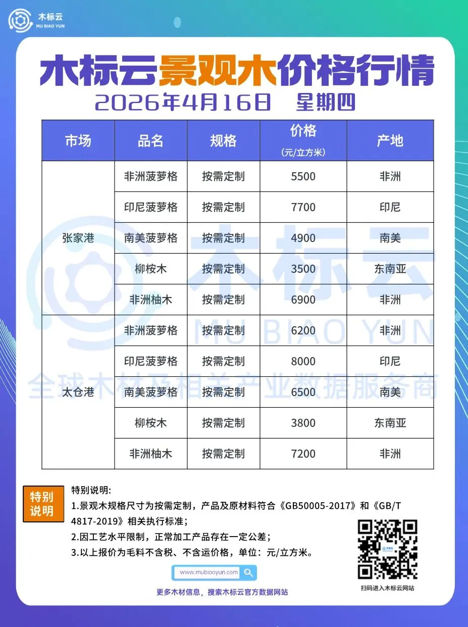 4月16日 | 木标云进口原木及成品市场价格行情
