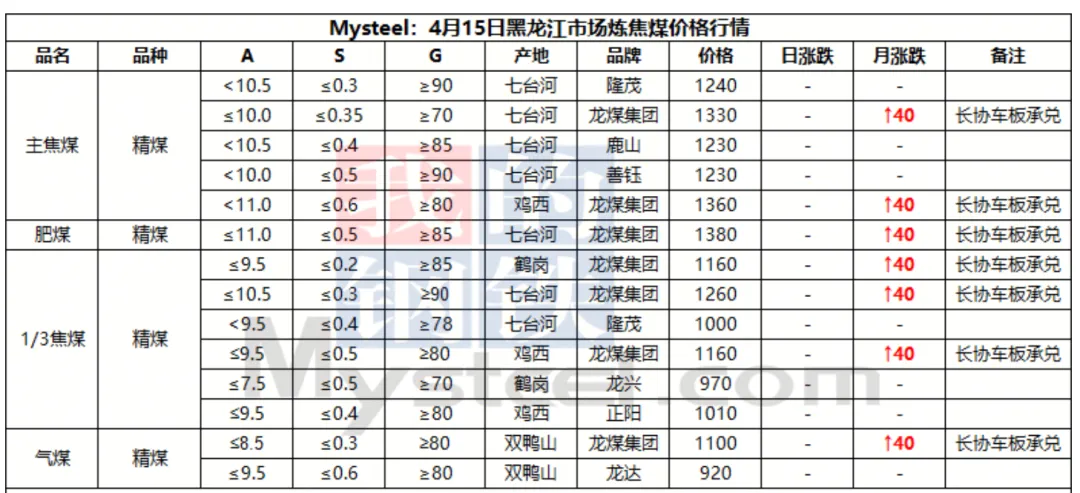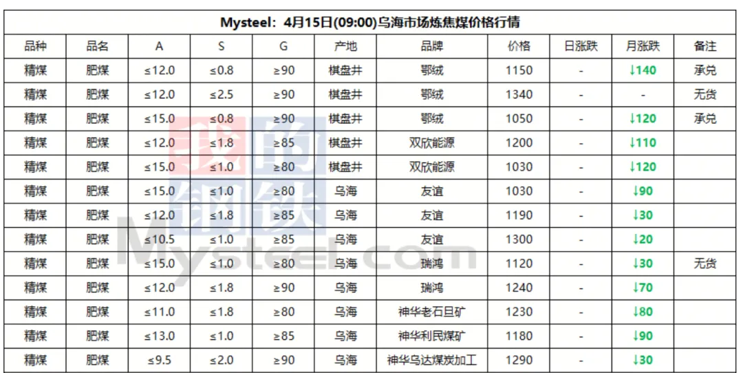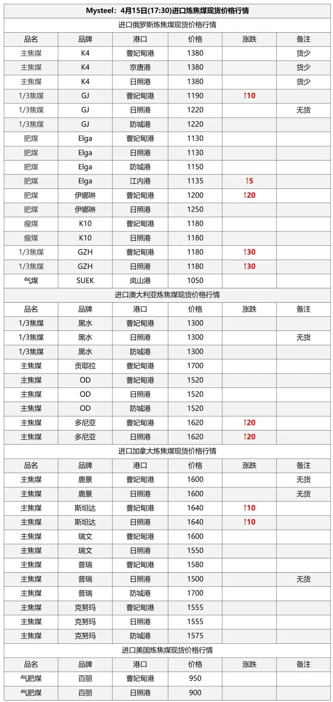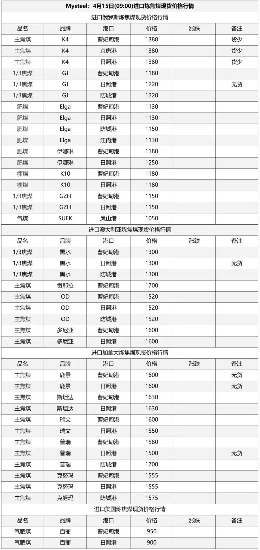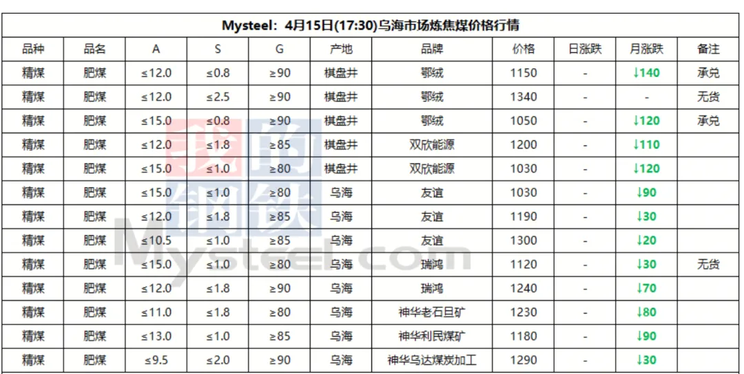 15日太原市场炼焦煤价格暂稳。本周炼焦煤市场行情震荡,成交环比有所好转,部分煤矿价格上涨20-40元/吨。近期部分区域煤矿因事故停产,但所属集团及区域内其他煤矿未有明显影响,产地煤矿产量并未明显下滑。随着铁水产量回升,焦煤需求进一步改善,炼焦煤整体库存并未明显累积,市场基本面矛盾不大,短期煤价将以窄幅震荡为主。