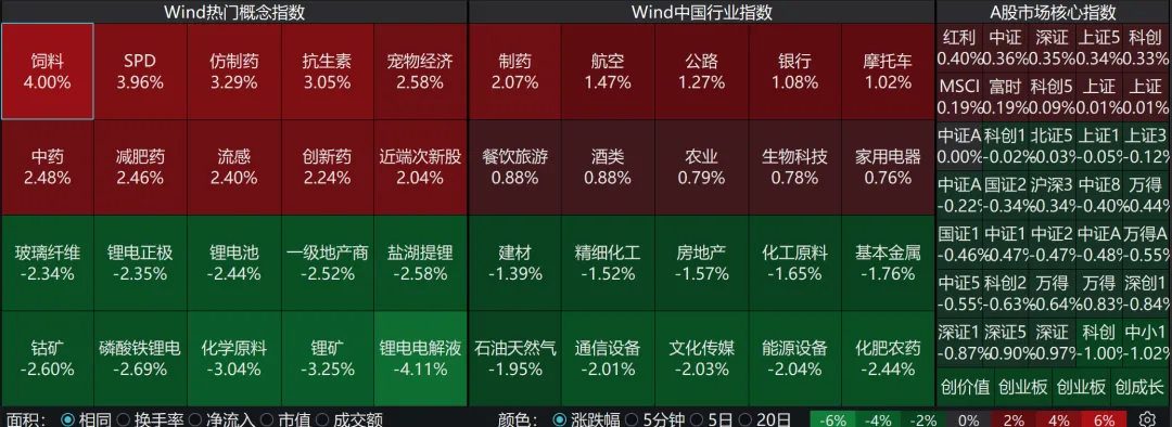 回到市场,在对美伊冲突进展钝化后,A股也开始自己的表演了。今天A股高开低走,创业板指跌逾1%。指数方面,上证指数收涨0.01%报4027.21点,深证成指跌0.97%,创业板指跌1.22%,沪深300跌0.34%,北证50跌0.03%,科创50涨0.09%,万得全A跌0.44%,万得A500跌0.55%,中证A500跌0.48%。