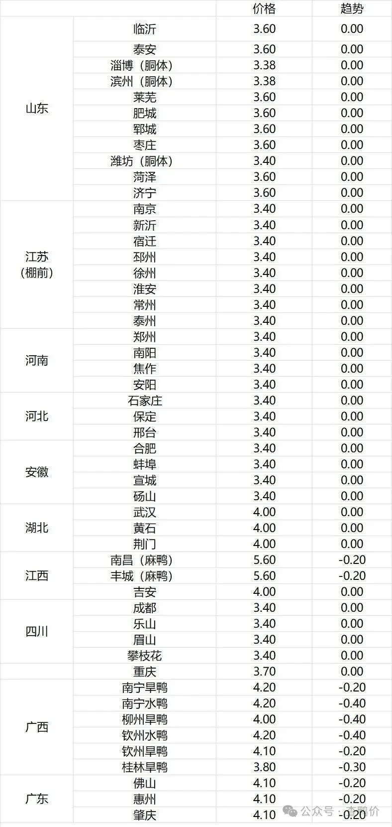 微评:鸭苗报价稳定。(注:南方只报当天价格)博弈加剧,情绪低迷,震荡走低。根据产品、养殖成本及鸭苗现状分析,预计近期鸭苗价格呈稳定为主趋势。种蛋报价稳定。温馨提示:该价格为主流厂家报价,实际销售价格以成交价格为准,价格仅供参考。