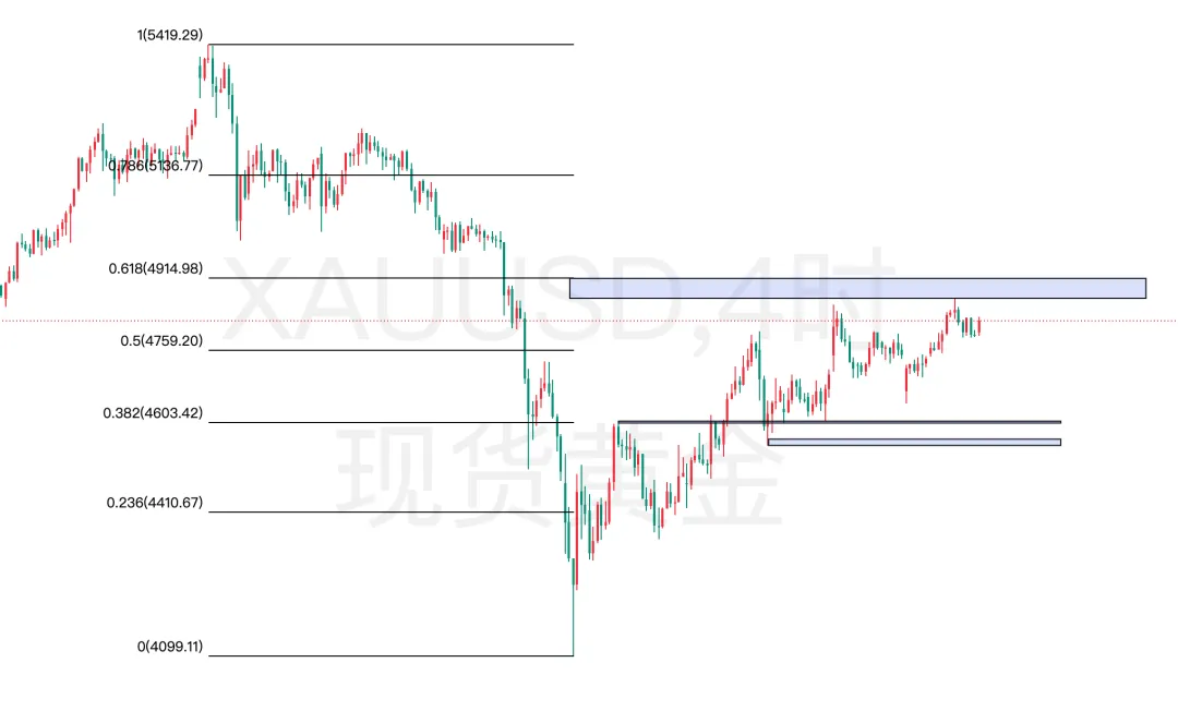 2、4853/4854:黄金自4871/4872下跌4786的黄金分割0.786位置;
