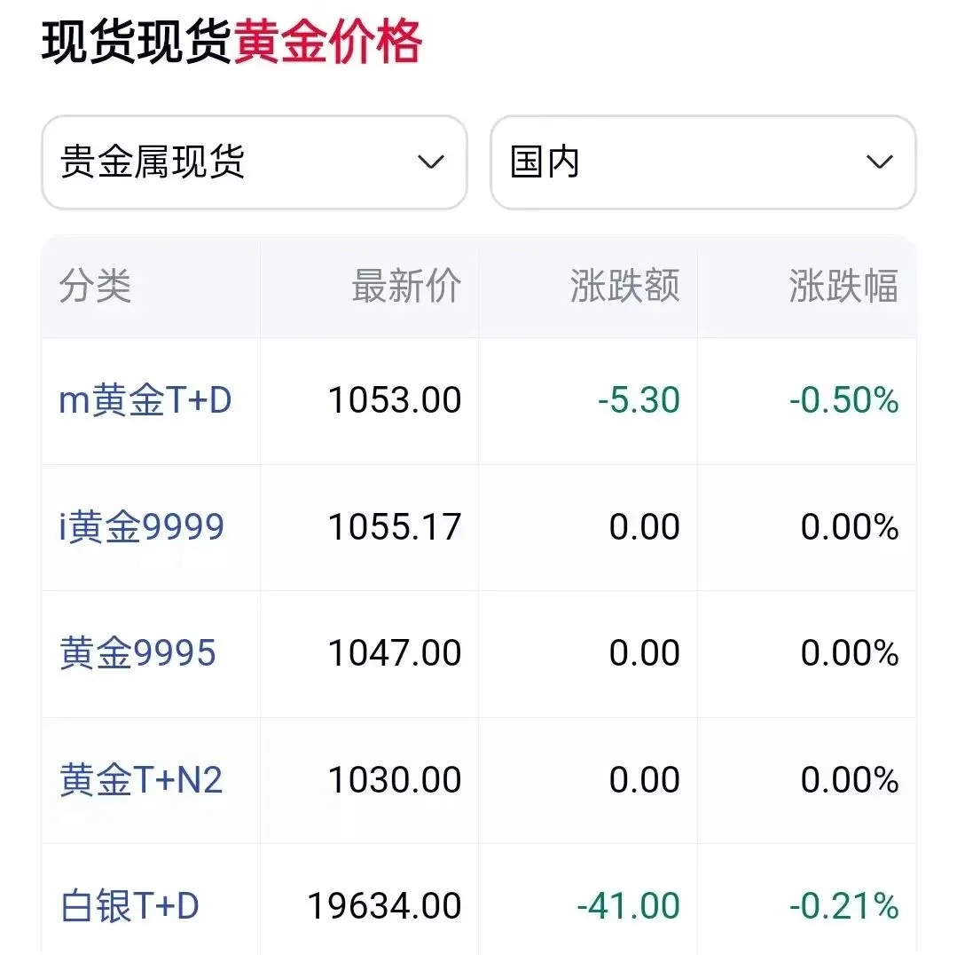 国内黄金T+D报1053.00元/克,下跌5.30元,跌幅0.50%;黄金9999报1055.17元/克、黄金9995报1047.00元/克,价格持平,市场承接力较强。