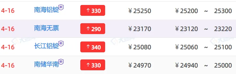 大涨!今日铝价行情!铝锭现货价格(2026.4.16周四)