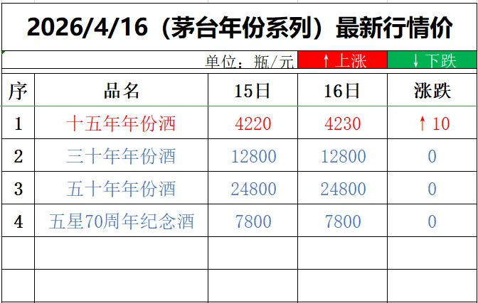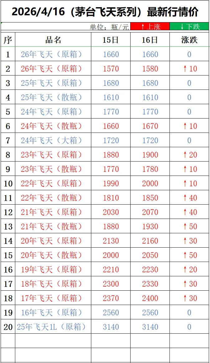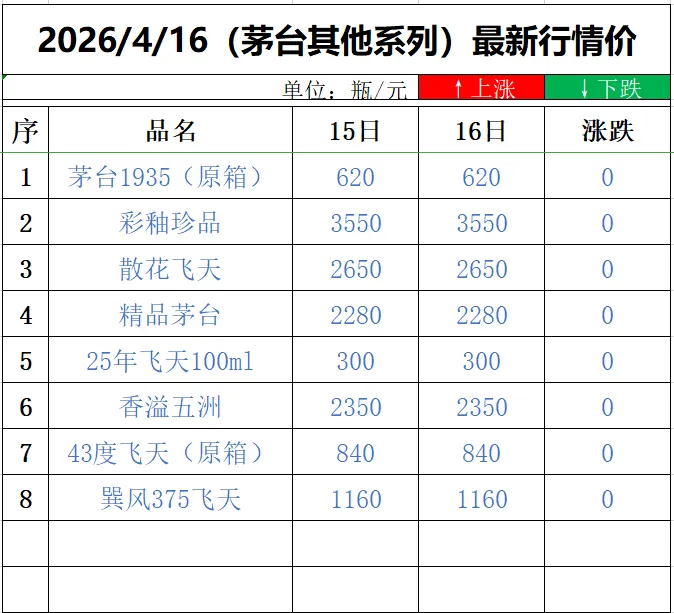 当前位置:首页>行情>4月16日茅台名酒行情价,飞天上涨!
