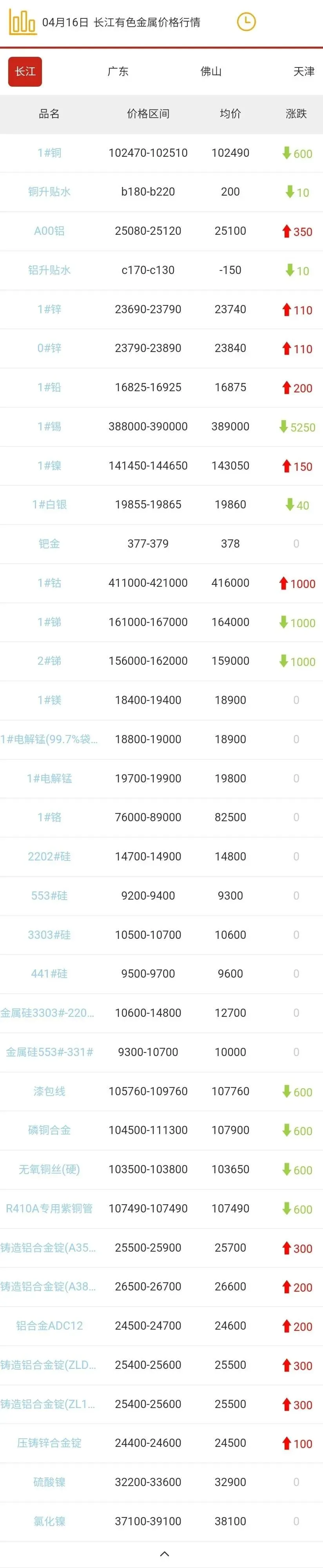 大涨!今日铝价行情!铝锭现货价格(2026.4.16周四)