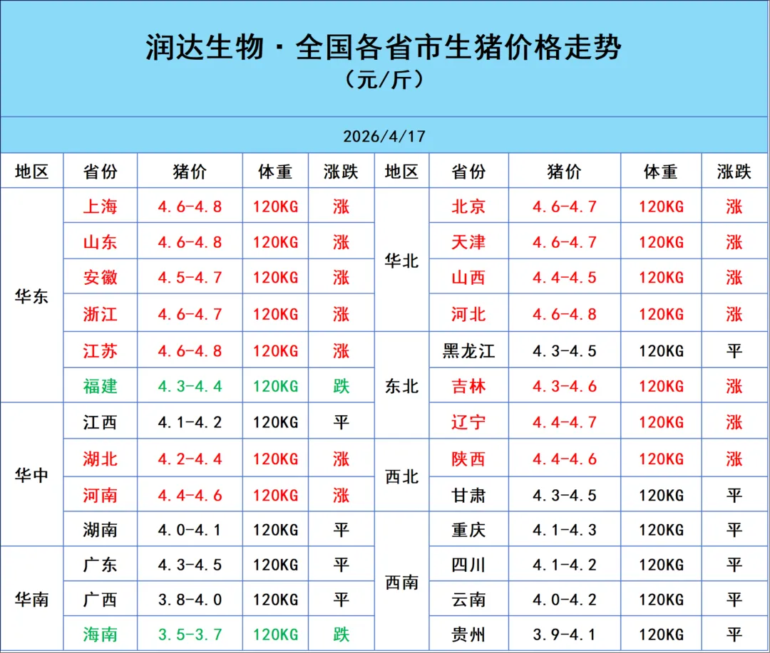 2026年4月17日明日猪价行情:迎来大面积上涨!