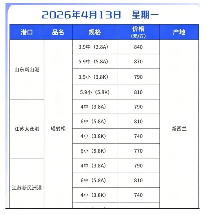 免责声明:本文数据来源于公开市场信息,仅供行业参,不构成任何投资、经营决策建议。木材价格受政策、天气等突发因素影响可能存在波动,相关从业者请结合自身实际情况理性布局,风险自担。,本公众号不负责。