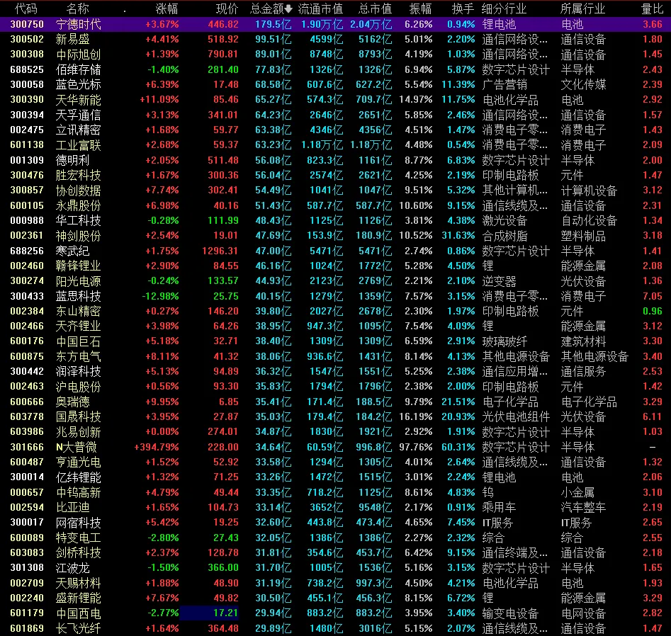 今天指数也是红盘,表现不错的是创业板指数、科创50指数,创业板指数在昨晚宁德时代公布一季报业绩超预期,今天迎来大涨,创业板指数大涨,创了10年信号,但是锂电池新能源板块并不是这个阶段的主赛道板块,它只能暂时走一段,不是未来的高成长板块,现在阶段就看科创50指数,以半导体为核心的科技赛道才是当下的主赛道;