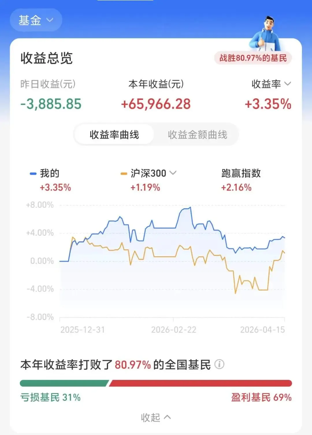 买入$富国创业板人工智能ETF联接C$,金额2000元,基金核心聚焦CPO 光模块 + AI 应用双主线,持仓以中际旭创、新易盛等算力龙头为核心,精准贴合 AI 产业最强景气环节。业绩表现十分突出,净值屡创新高,近六个月上涨了46.04,全面跑赢科创板人工智能、中证人工智能等同类指数。当前创业板为市场强势主线,人工智能更是核心赛道,光模块基本面强劲,地缘缓和后反弹动能充足。中际旭创提前发布一季报,市场普遍预期业绩超预期。历史上 4 月市场偏好基本面确定品种,AI 与芯片因高景气与业绩确定性,有望迎来阶段修复,开始布局或能把握主线弹性。