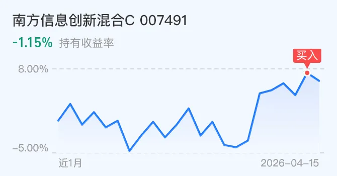 加仓$南方信息创新混合C$,金额5000元,这只基金以半导体板块为核心布局方向,重仓覆盖芯片设备、材料等关键领域,深度贴合当前科技成长主线。近期半导体行业景气度持续回升,国产替代进程不断推进,叠加 AI 算力需求持续爆发,上下游订单与业绩均出现积极变化。基金整体弹性较强,在科技反弹行情中表现突出,同时持仓结构较为均衡,回撤控制优于不少单一赛道产品,近一年上涨了72.77%,表现好。继续加仓有望充分受益于半导体周期复苏与产业升级带来的成长机会。