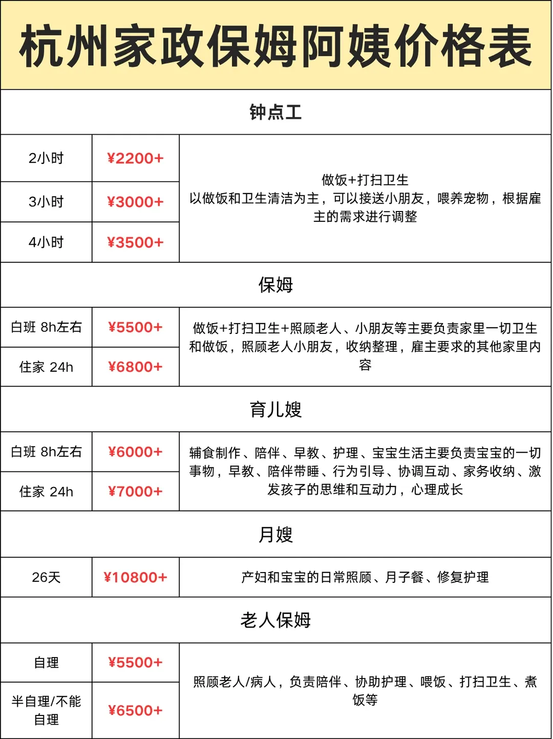 杭州请保姆阿姨多少钱一个月? 行情速览