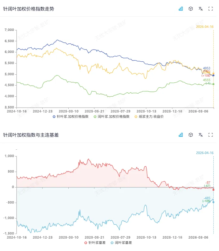 市场摘要:今日纸浆SP05合约区间震荡,针叶青岛银星基差05+40附近,常熟银星基差05+110附近,刚需点价成交。阔叶浆报价维持4580附近,较为坚挺,实单受限。期货端资金集中获利了结与避险意愿上升,空单的集中离场有效缓解了盘面压力。