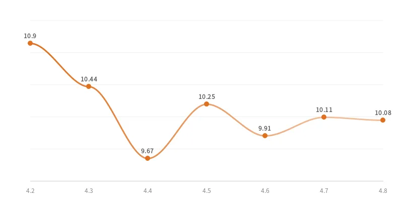 据农业农村部"全国农产品批发市场价格信息系统"监测,上周(4月2日--4月8日)芸豆(鲜食)全国市场价格走势如下图: