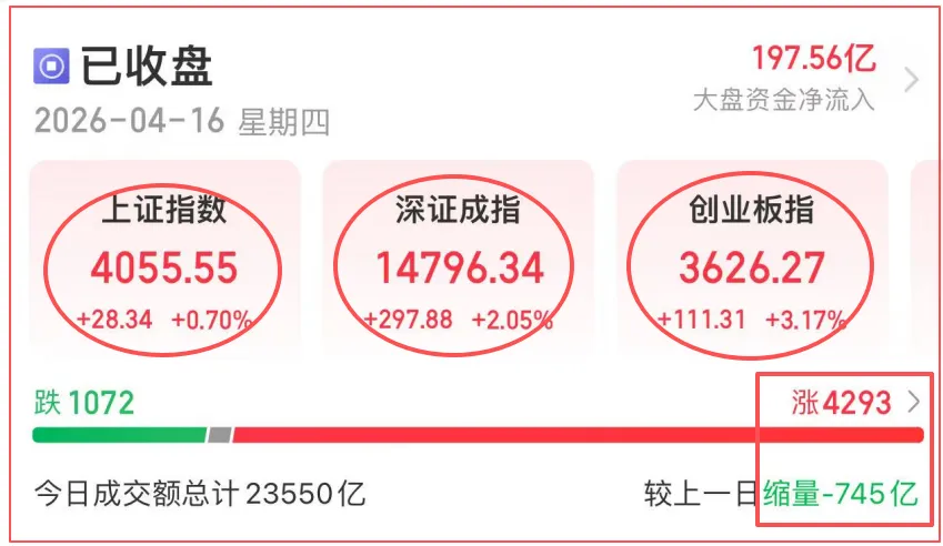 今天三大指数全线翻红,,全市近4300只个股上涨,创业板指暴涨3.17%收3626点,刷新近11年新高,这架势,有点猛啊!