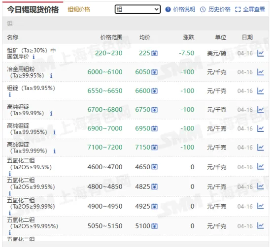 五、钽:全链同步回调,上游矿价领跌,市场交投冷清