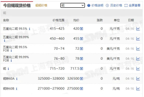 铌系市场今日延续一贯的平稳运行态势,全品类报价与昨日完全一致,无任何涨跌波动,是有色板块中走势最稳定的品种。市场成交以长期协议单为主,散单流通量极少,报价体系长期稳固。