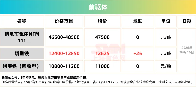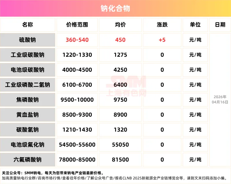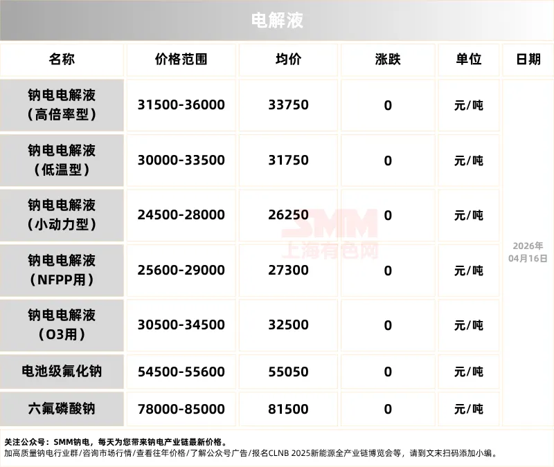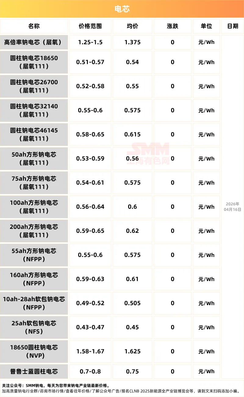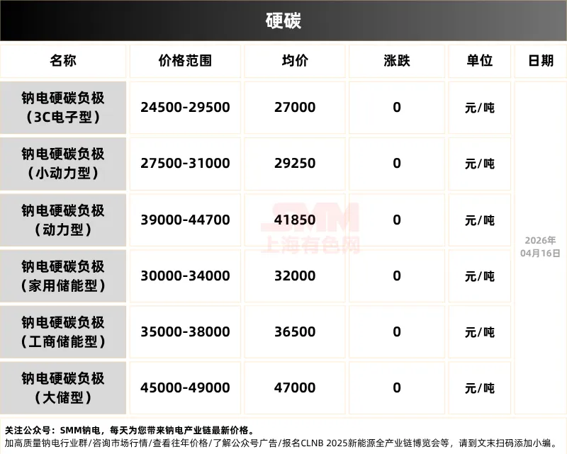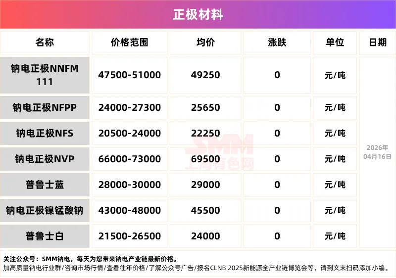 每日获取最新钠化合物、前驱体、正极材料、硬碳、电芯、电解液价格
