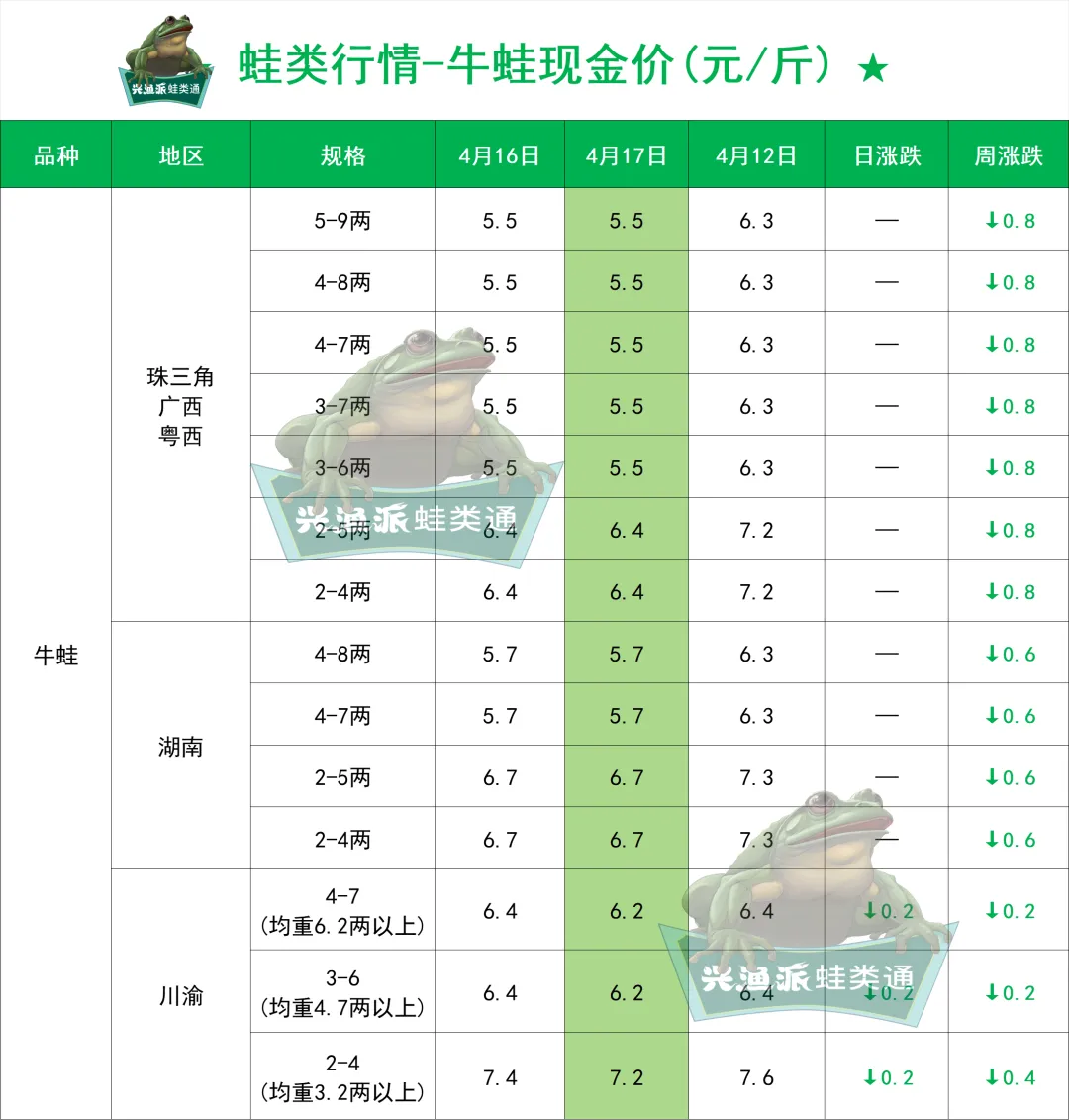 4月17日牛蛙现金价